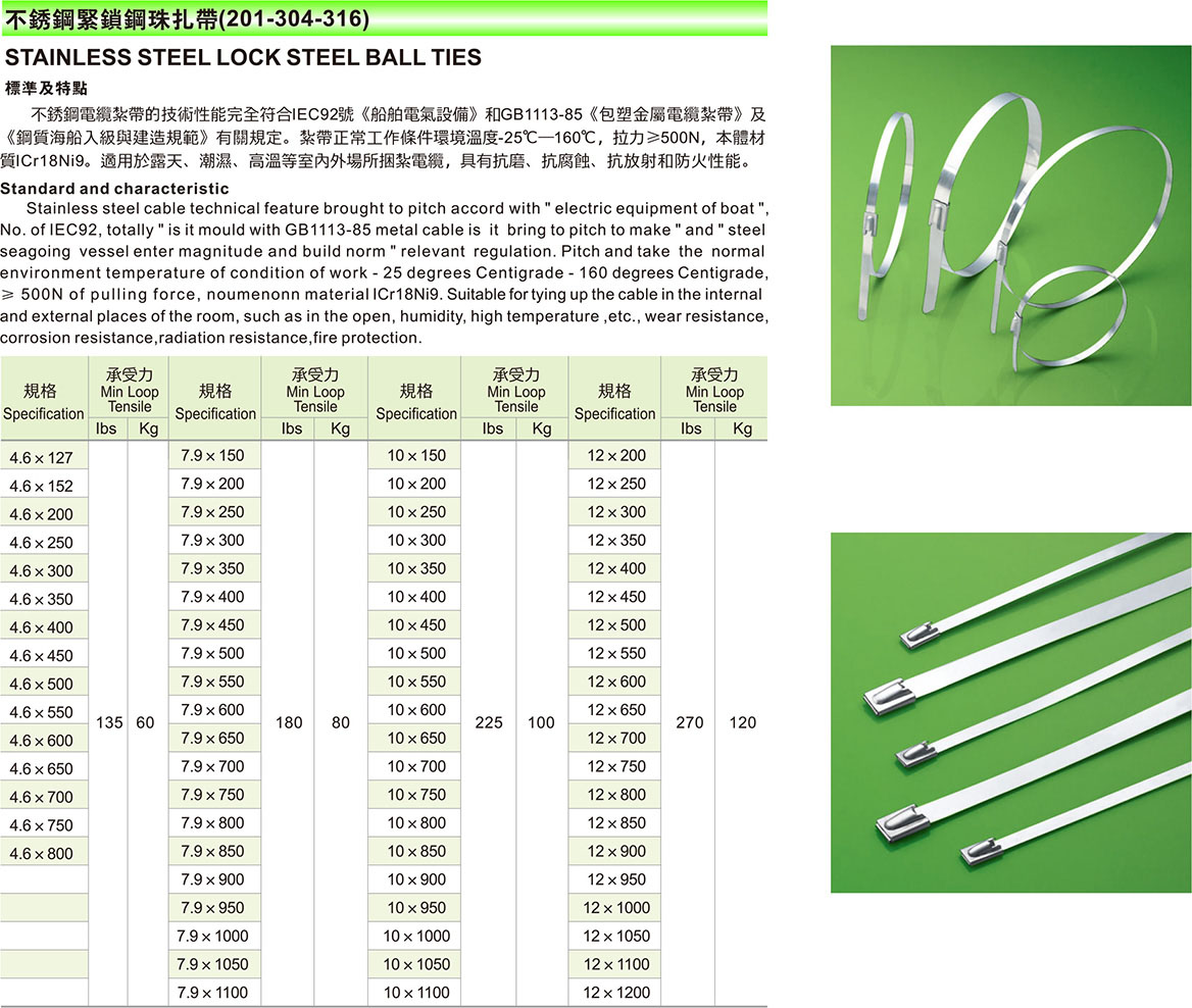 Products WIRE/CABLE STRAP STAINLESS STEEL CABLE TIES STAINLESS STEEL LOCK STEEL BALL TIES(201-304-316)