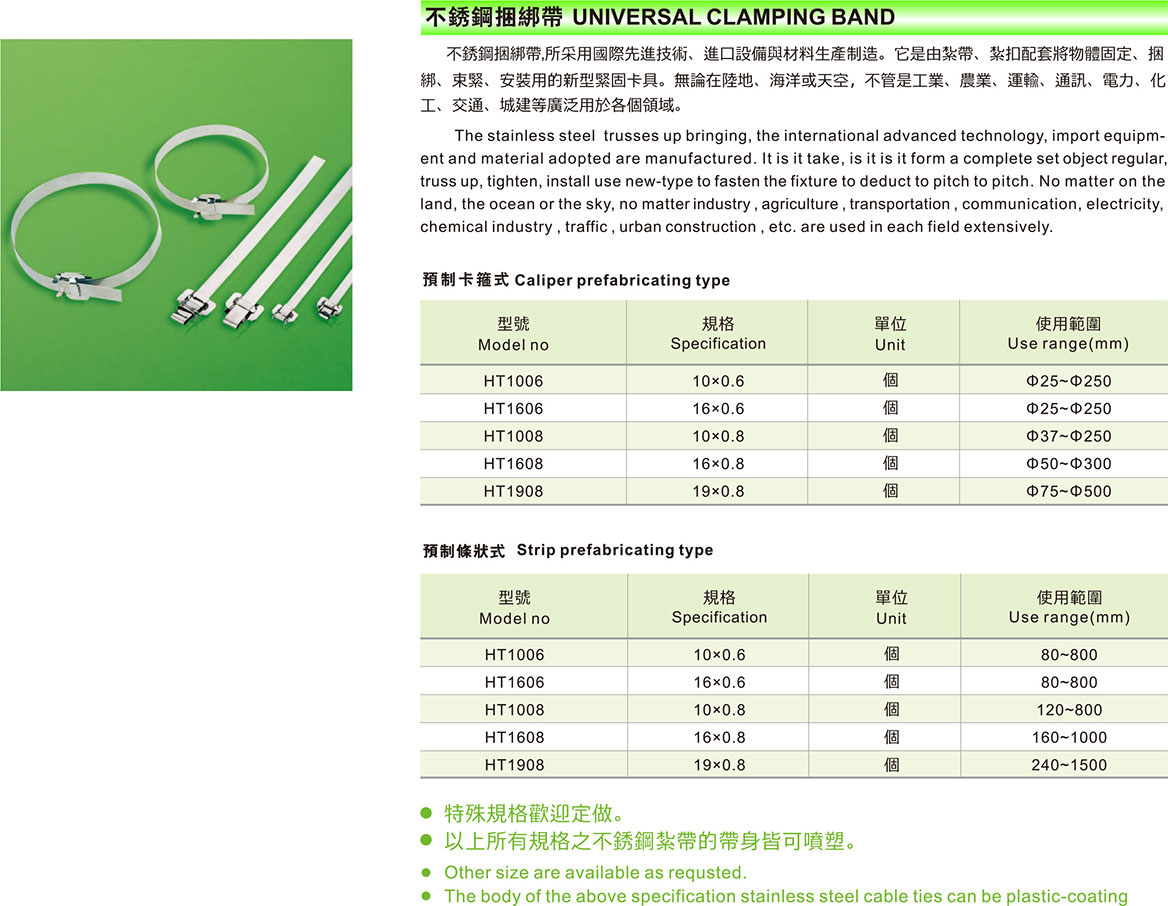 Products WIRE/CABLE STRAP STAINLESS STEEL CABLE TIES UNIVERSAL CLAMPING BAND