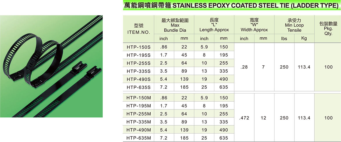 Products WIRE/CABLE STRAP STAINLESS STEEL CABLE TIES STAINLESS EPOXY COATED STEEL TIE(LADDER TYPE)