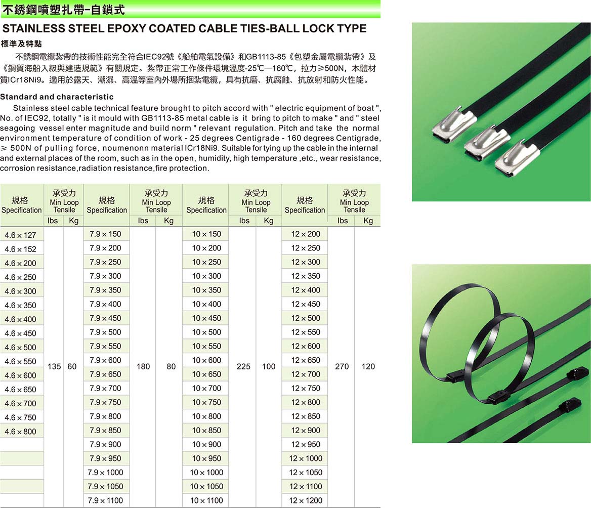 Products WIRE/CABLE STRAP STAINLESS STEEL CABLE TIES STAINLESS STEEL EPOXY COATED CABLE TIES-BALL LOCK TYPE