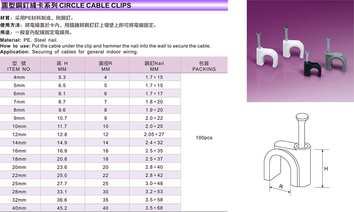 Products NAIL CABLE CLIPS SERIES CIRCLE CABLE CLIPS