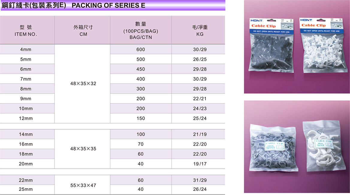 Products NAIL CABLE CLIPS SERIES PACKING OF SERIES E