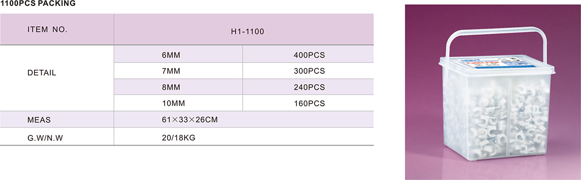 Products NAIL CABLE CLIPS SERIES H1-1100(PACKING OF SERIES H)