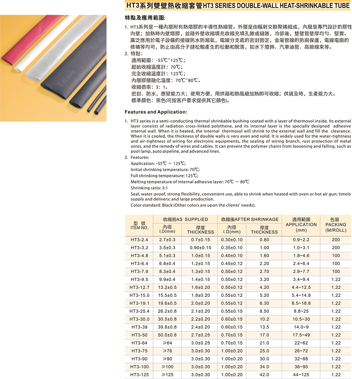 Products WIRING ACCESSORIES SERIES HT3 SERIES DOUBLE-WALL HEAT-SHRINKABLE TUBE