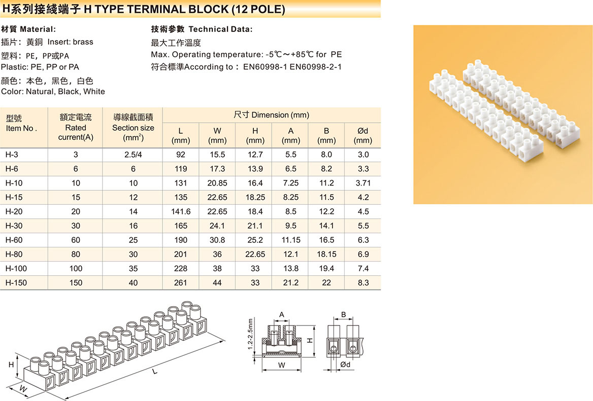 Products WIRING ACCESSORIES SERIES H TYPE TERMINAL BLOCK(12 POLE)