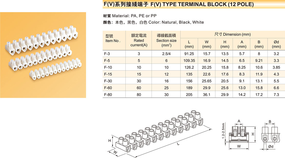 Products WIRING ACCESSORIES SERIES F(V) TYPE TERMINAL BLOCK(12 POLE)