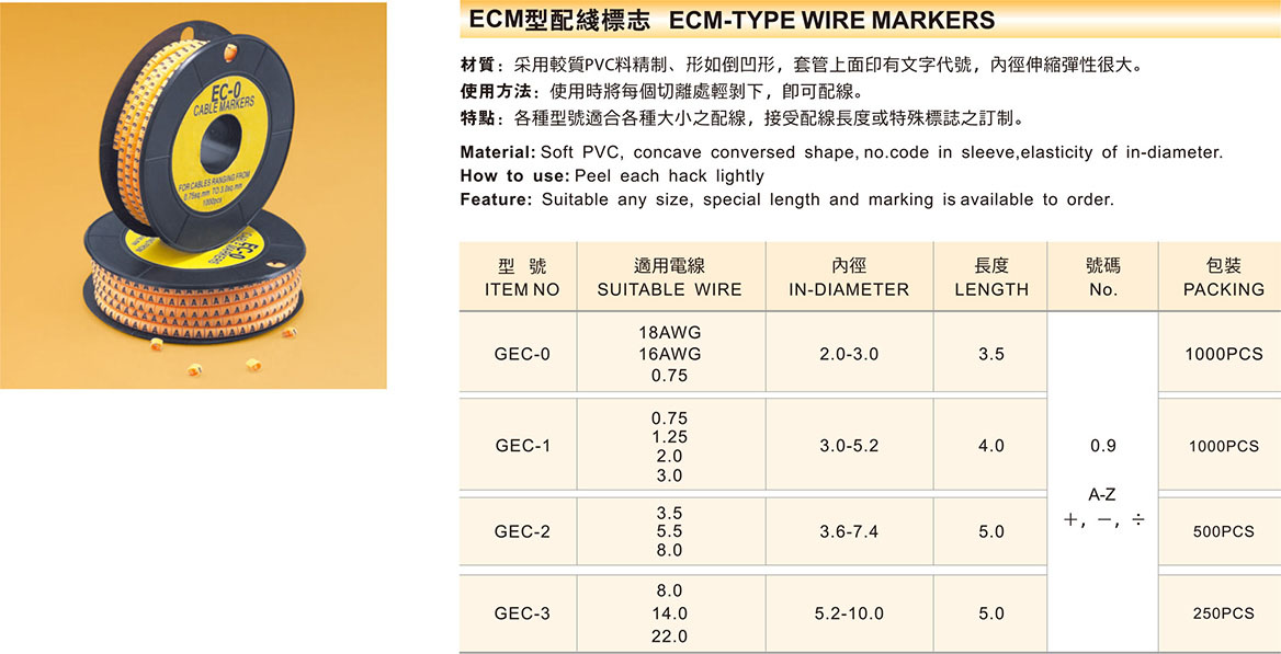 Products WIRING ACCESSORIES SERIES ECM-TYPE WIRE MARKERS