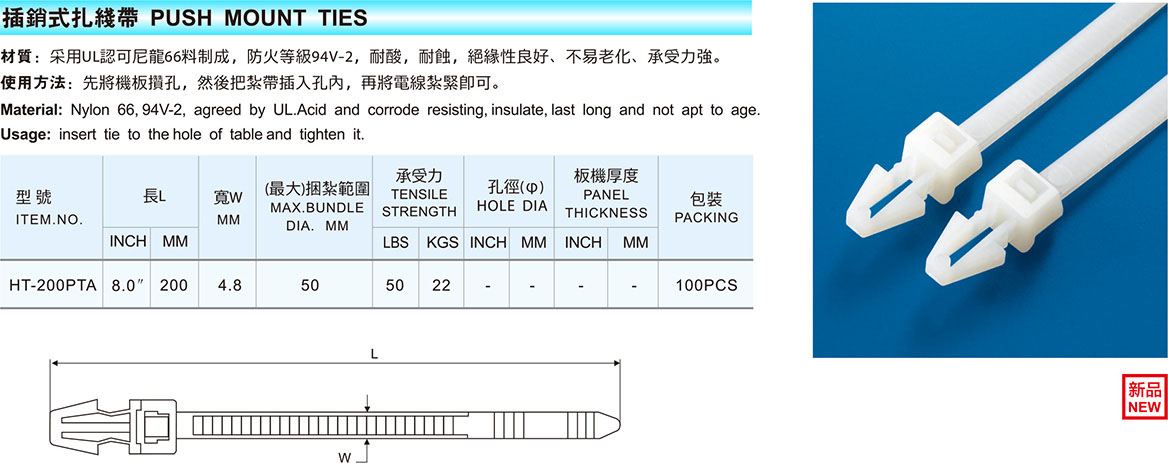 Products NYLON CABLE TIES SERIES PUSH MOUNT TIES