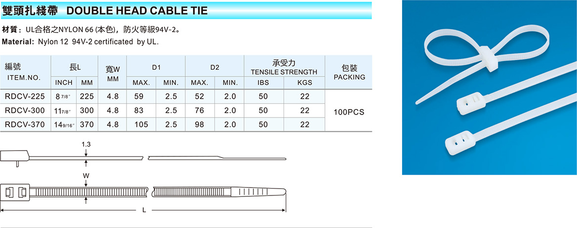Products NYLON CABLE TIES SERIES DOUBLE HEAD CABLE TIE
