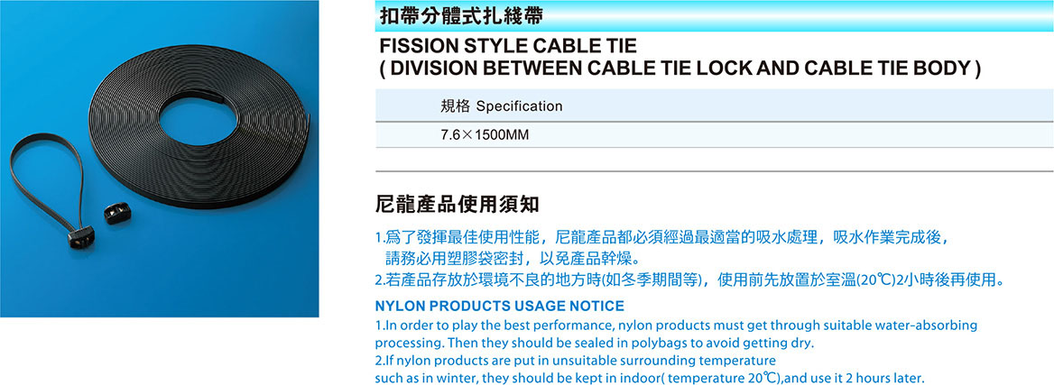 Products NYLON CABLE TIES SERIES FISSION STYLE CABLE TIE(DIVISION BETWEEN CABLE TIE LOCK AND CABLE TIE BODY)