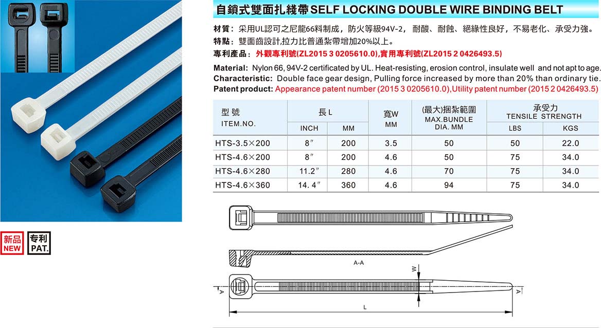 Products NYLON CABLE TIES SERIES SELF LOCKING DOUBLE WIRE BINDING BELT